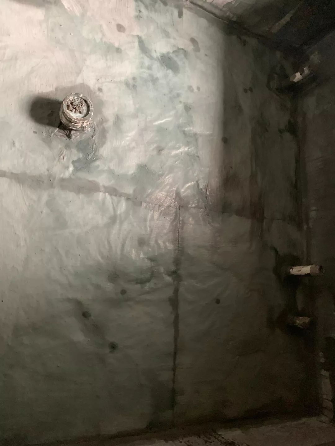 穿件管道都要用套管套好,套管和墻體的孔洞要用堵漏王填充好,且涂刷防水材料要刷至套管10㎝高并不能過厚;施工現(xiàn)場涂料的配合比