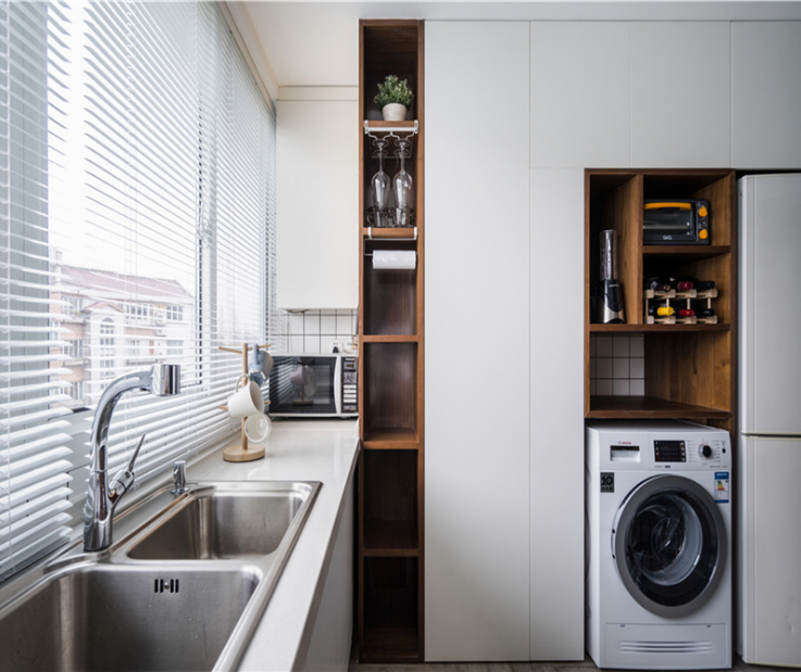 餐廳原有的空間非常的有限,設(shè)計師設(shè)計了入戶鞋柜和卡座相結(jié)合的做法,既節(jié)省了空間又保證了功能。